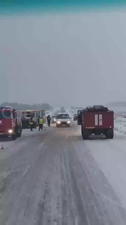 На трассе в сторону Курагино, между населёнными пунктами Большая Иня и Шошино, произошло ДТП с участием школьного автобуса и легкового автомобиля.