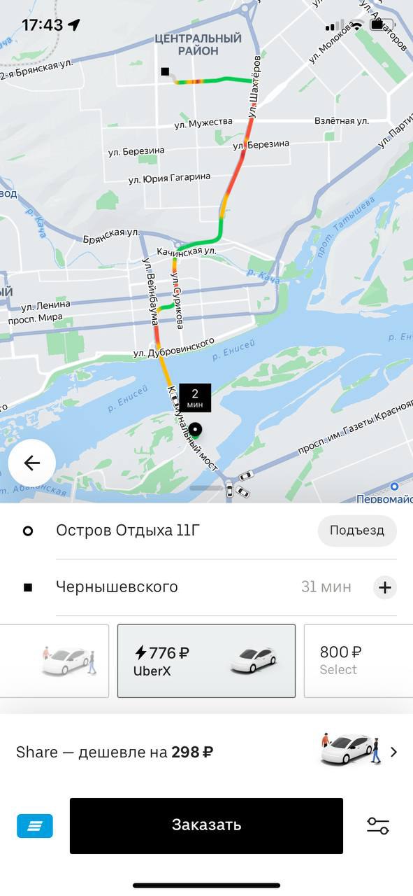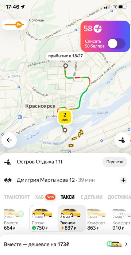 К примеру, сейчас доехать с острова Отдыха в Покровку стоит около 800 рублей, а в обычное время – 280-300. Пробки в городе оценивают в 8 баллов.