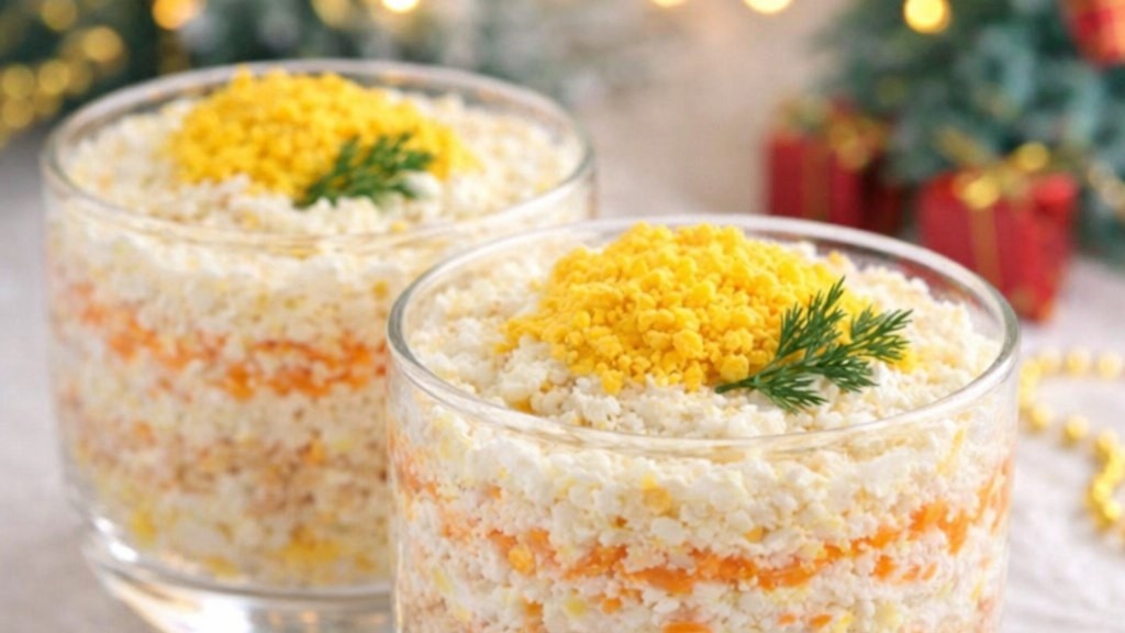На пороге новогодних праздников время подумать о традиционных закусках, и одним из самых ярких блюд остается салат Мимоза. Этот вкусный и нежный салат, знакомый многим с детства, теперь можно подать в стильных стаканах или креманках. Такой подход делает его не только визуально привлекательным, но и удобным для гостей.