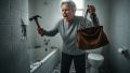 В Японии енотовидная собака забралась в конюшню и так объелась, что когда ее застукали, не смогла сбежать и застряла в дыре для кошки.