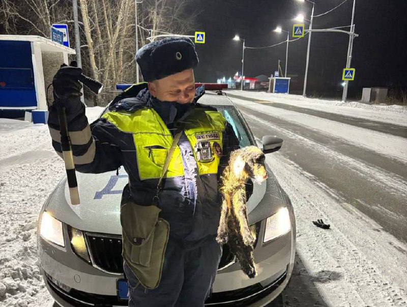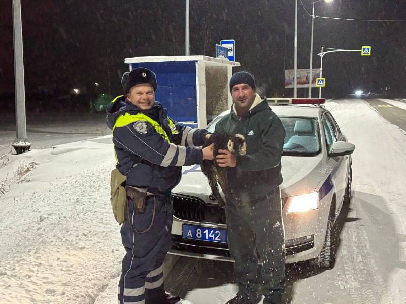 Во время несения службы на автодороге «Шарыпово-Ужур-Балахта» инспекторы ДПС Госавтоинспекции «Шарыповский» капитан полиции Егор Дорохов и младший лейтенант полиции Даниил Поздняков заметили ягненка.