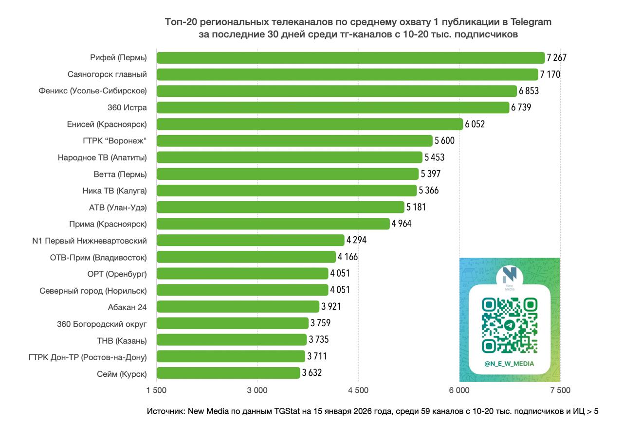 Телеграм «Енисея» занял 5 место среди региональных тг-каналов по суммарному охвату