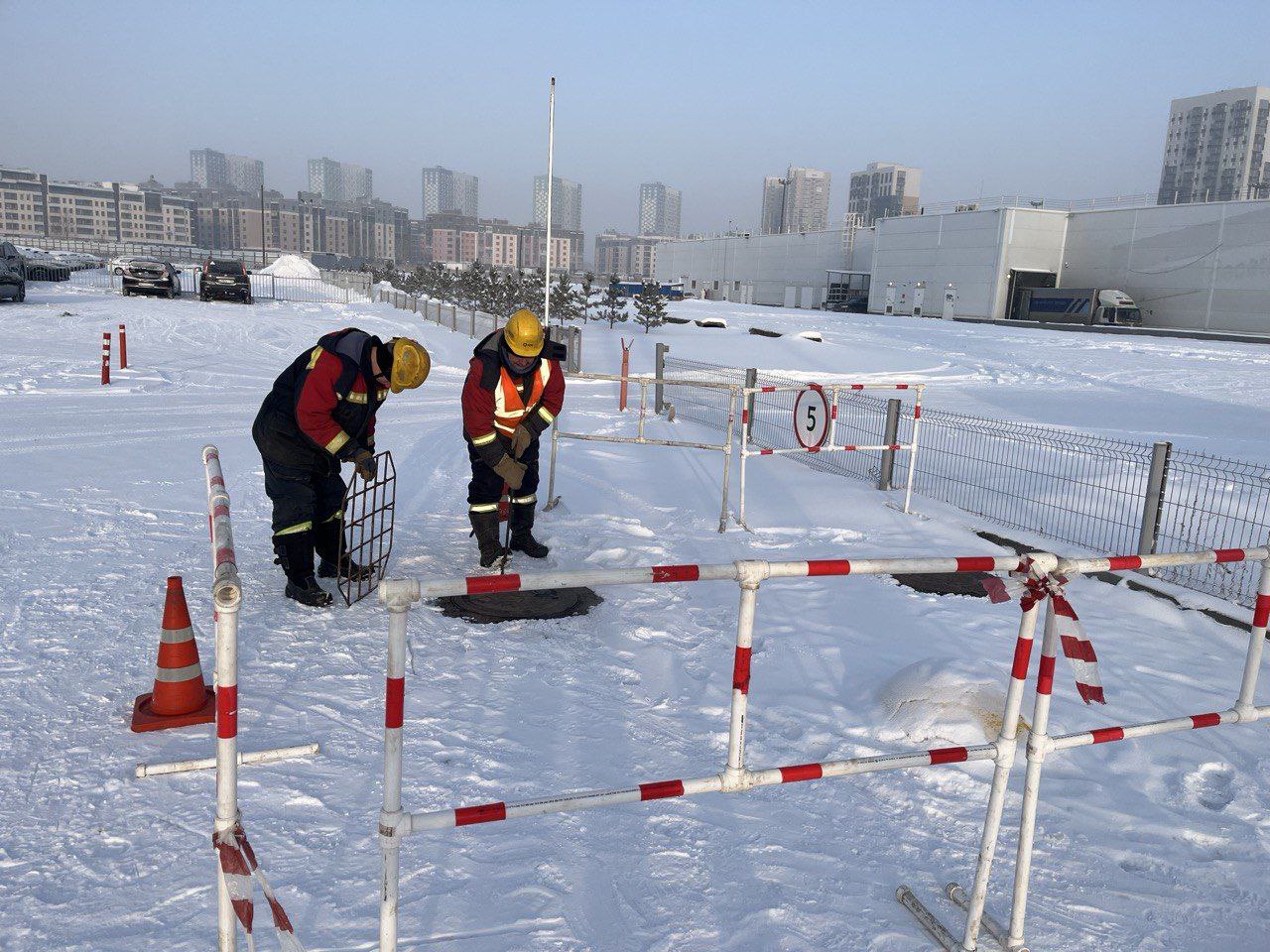 На фото проверка теплосети в Советском районе (рядом с ТРЦ «Планета»)