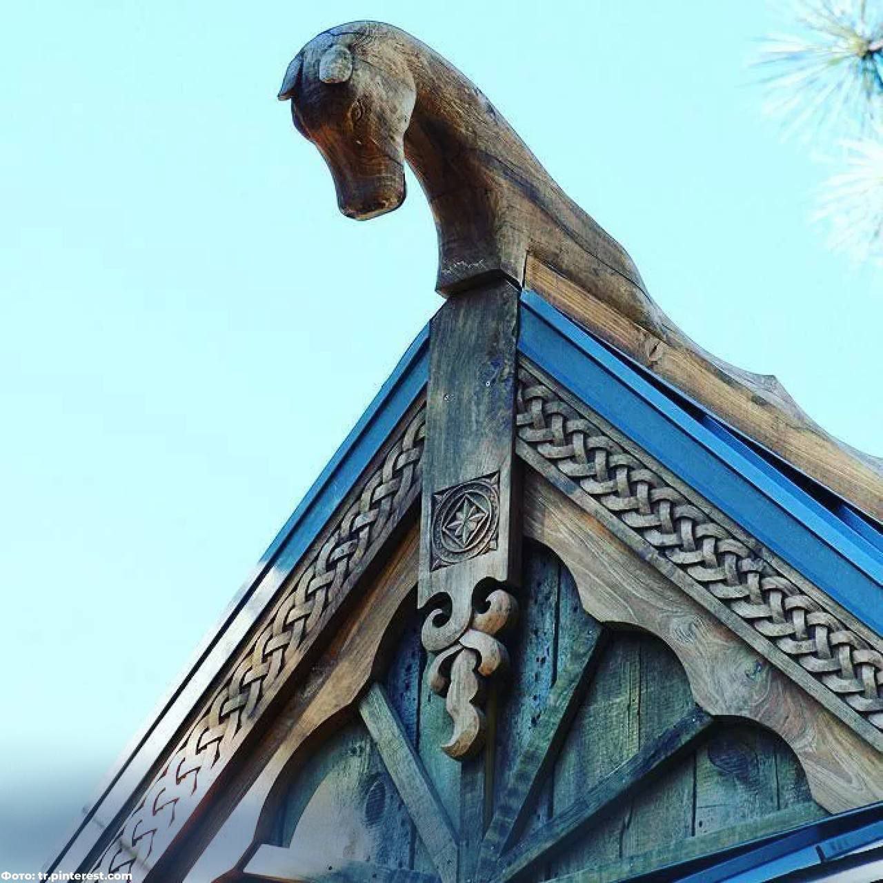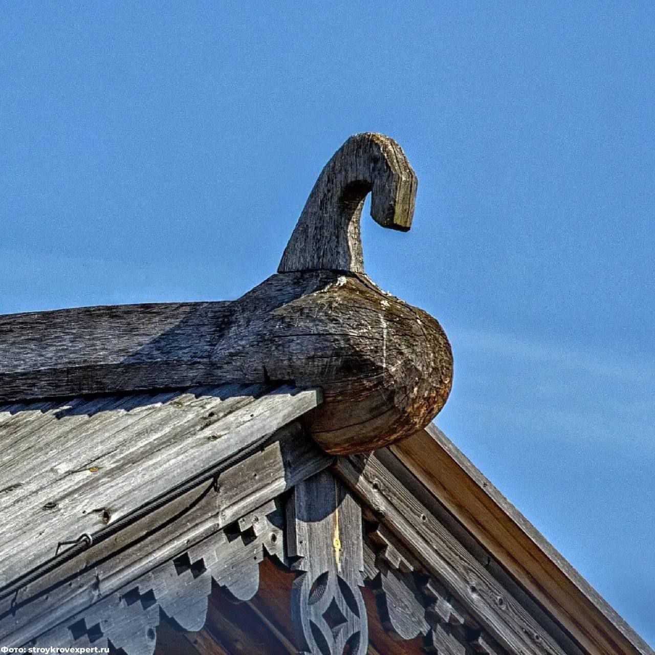 Массивное бревно, завершающее конструкцию двускатной кровли в традиционном деревянном зодчестве. Его вытесывали из цельного ствола дерева, часто придавая концу форму коня или птицы.