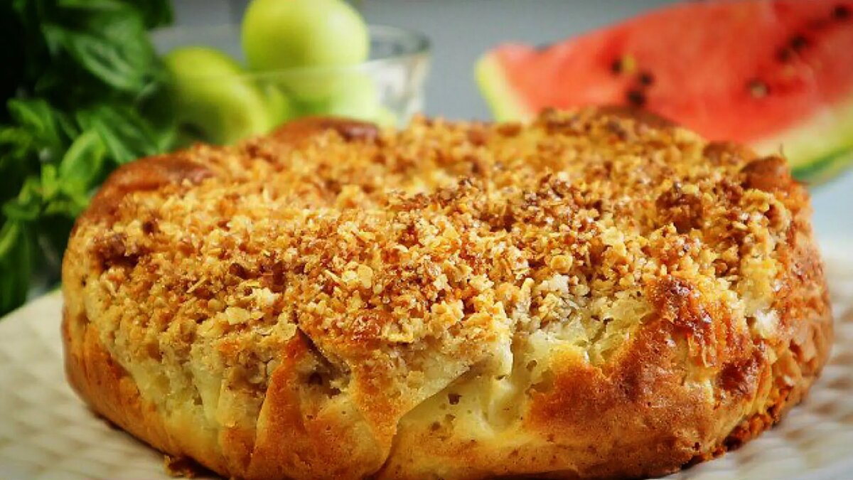 На подготовленное дно формы диаметром 22 см аккуратно выливается тесто, затем равномерно распределяются нарезанные яблоки. Поверх них заливается начинка, а завершающим штрихом станет посыпка пирога приготовленной крошкой. Выпекать нужно примерно 45–60 минут при температуре 180°C, проверяя готовность шпажкой.