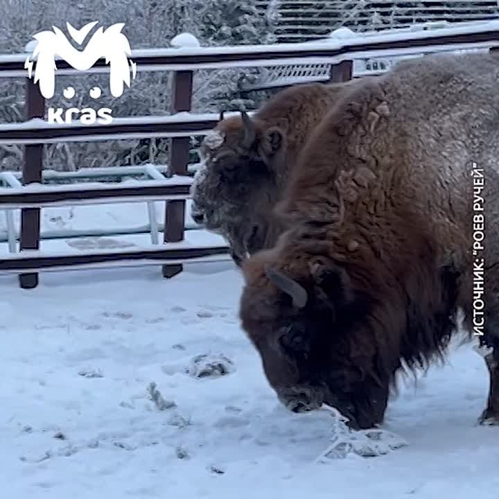 Зубрам из "Роева ручья" морозы точно не страшны. Муха, Мулана и Мурашка просто балдеют от лёгкой прохлады в своих модных шубах.