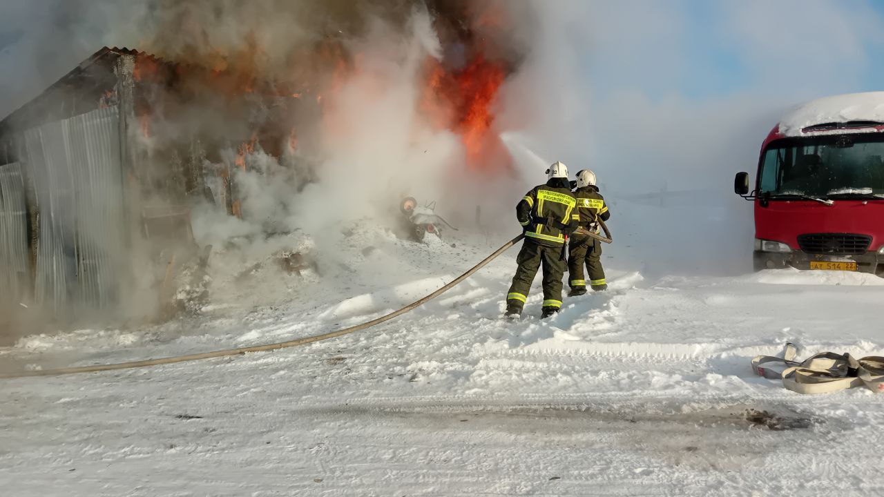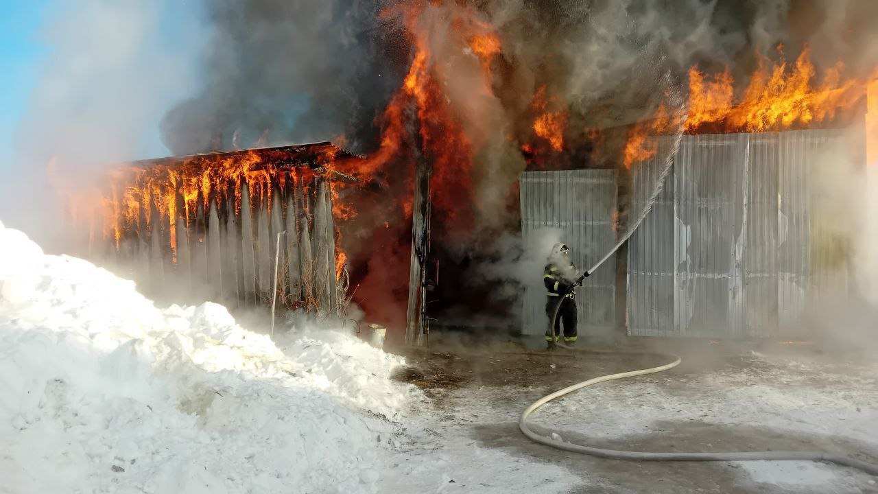 Возгорание потушили на 168 квадратах. В противопожарной охране края рассказали, что хозяин гаража оставил растопленную печь без присмотра, это и стало причиной происшествия. Никто из людей не пострадал, но три тяжелых машины отстоять не удалось.
