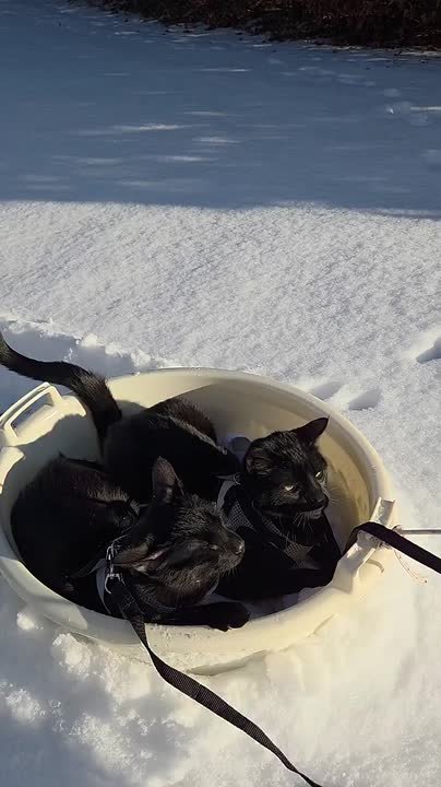 В такую погоду, кажется, по сугробам удобнее всего передвигаться вот так — в тазике