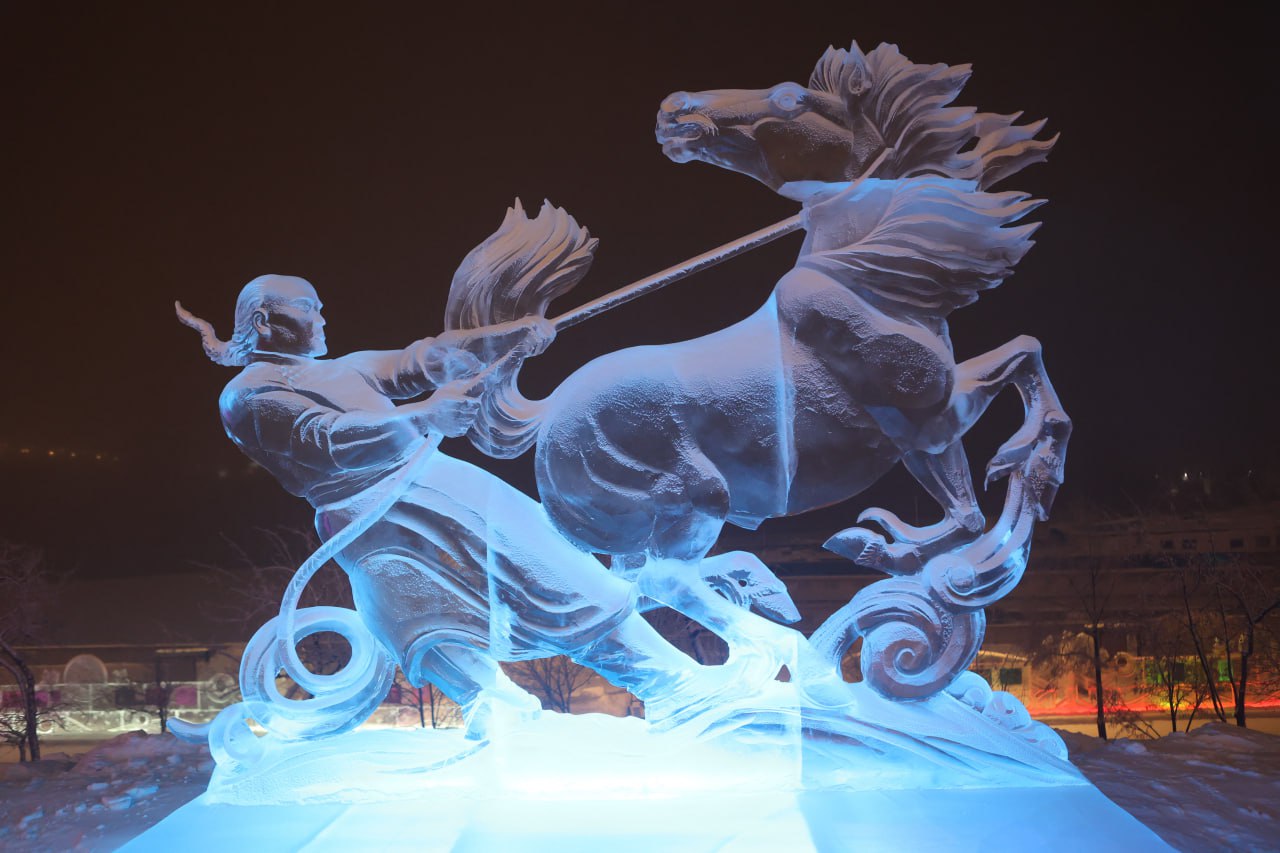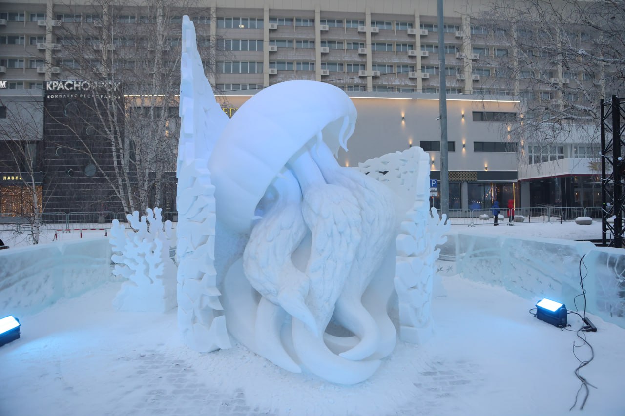 Работы участников фестиваля «Волшебный лёд Сибири» будут стоять на Театральной площади и Центральной набережной до весны.