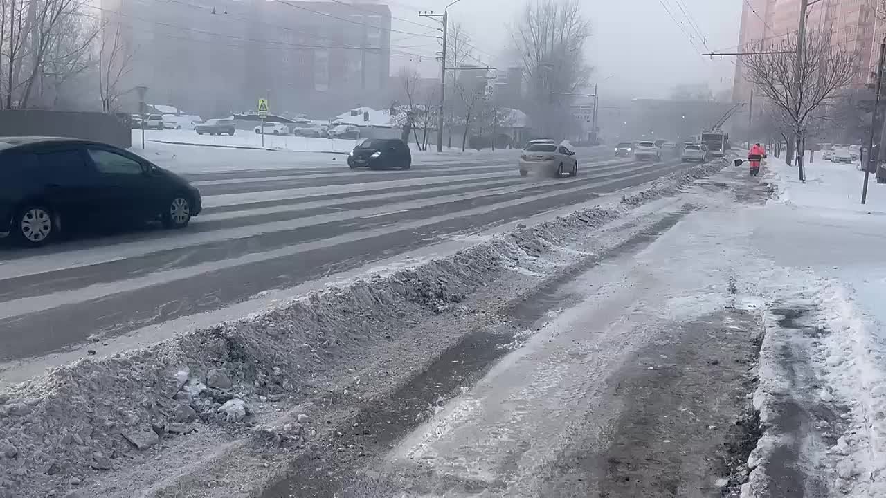 Например, на видео - 60 лет Октября и Калинина. Мороз - морозом, а снег убирать надо!