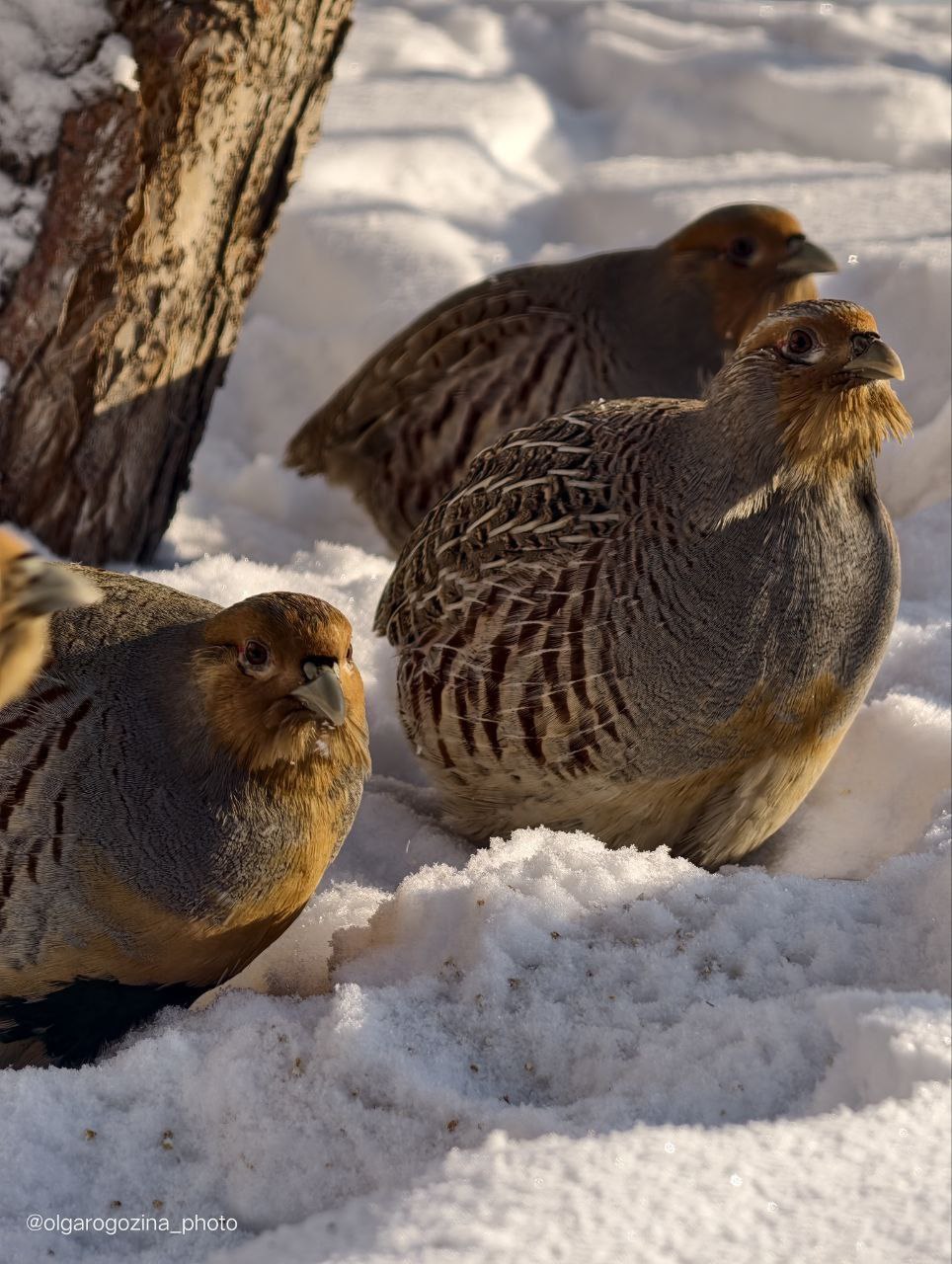 «Завела себе подружек-цыпочек. Подкармливаю. А если серьезно, то благодарю за то, что красиво позировали, разрешили поснимать.И, конечно, я не ожидала, что они побегут ко мне. Обычно пугливые и сразу улетают. Красивейшие солнечные куропатки», – пишет автор Ольга Рогозина.