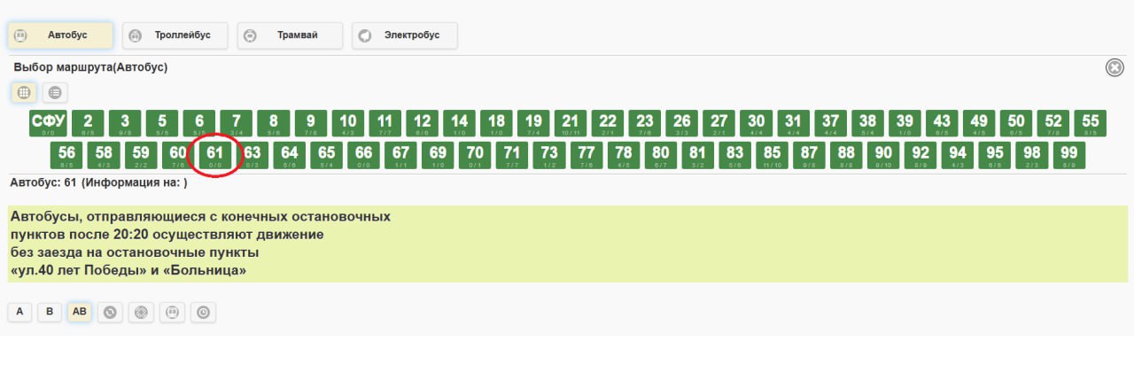 Судя по информации на сайте mu-kgt.ru, сегодня во второй половине дня на маршруте нет ни одной машины. Красноярцы сначала думали, что это системный сбой, но потом поняли, что дело не в онлайн-сервисе.
