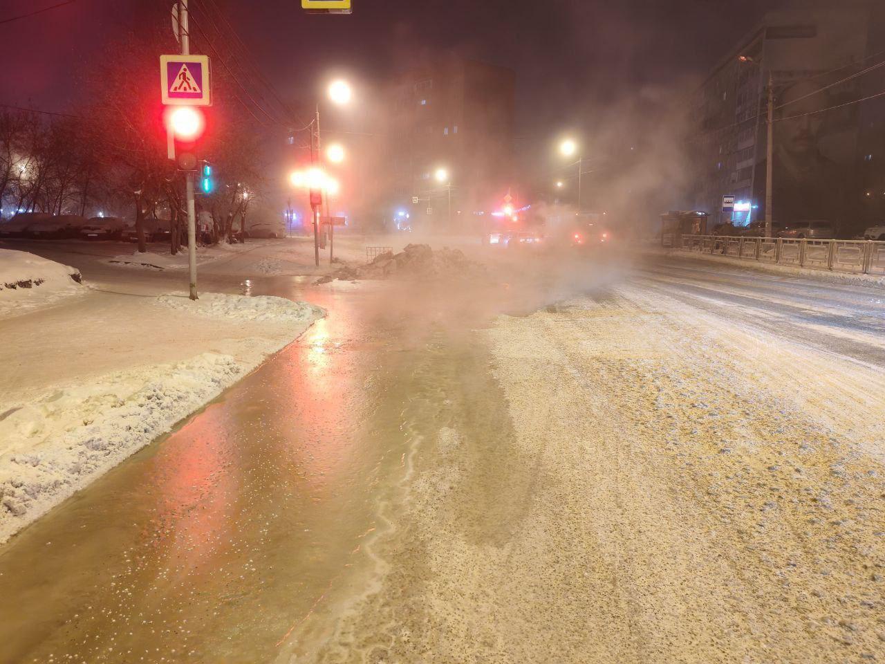 Вода вытекла на проезжую часть возле дома на Железнодорожников, 17