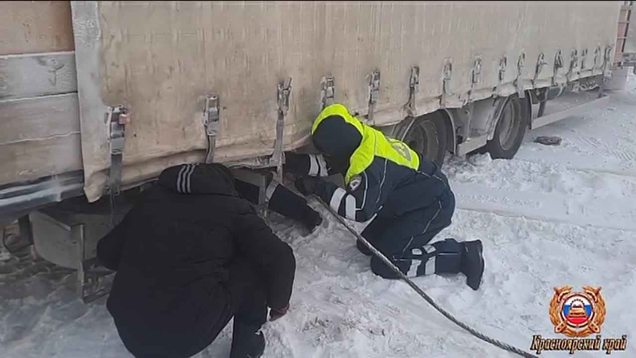 21-летний водитель большегруза DAF вез животных из Балахты в Красноярск. Он не справился с управлением на «кольце» и на подъезде к городу Назарово оказался в снежном плену. Несколько часов в -40 градусов сам пытался вызволить машину с 30 коровами, но ничего не вышло.