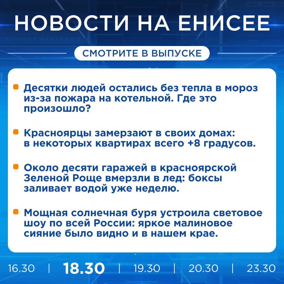 Подробнее об этих и других новостях расскажем на «Енисее»