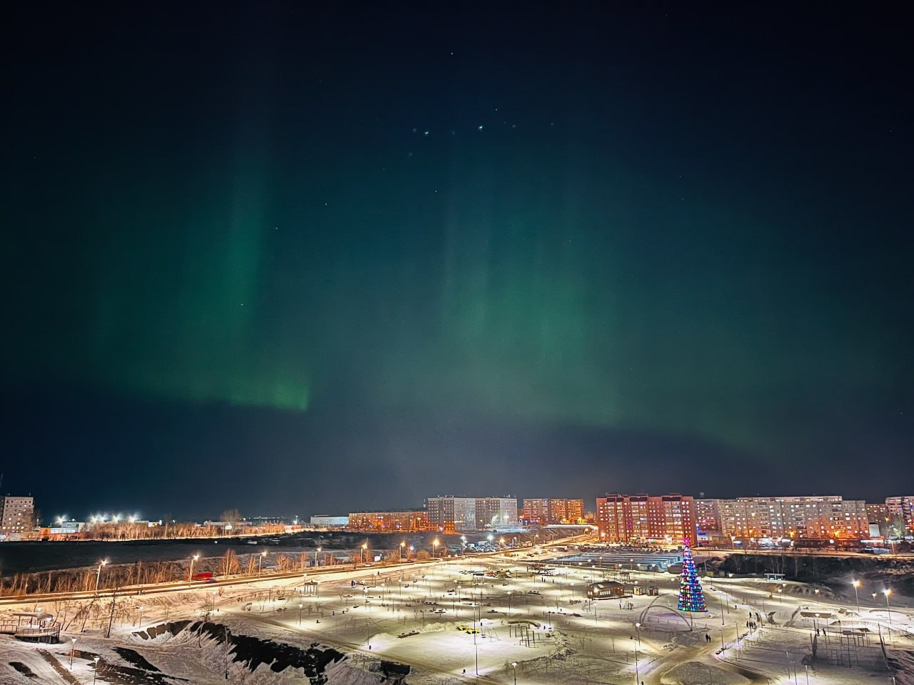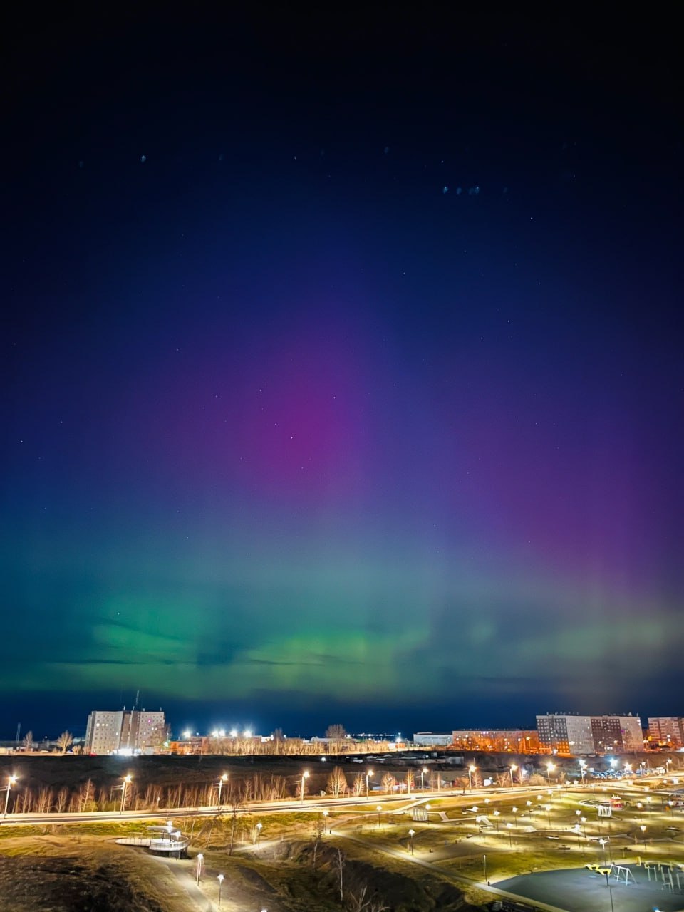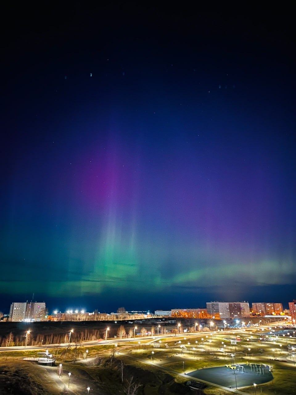 Наш подписчик отправил фотографии, сделанные в январе и апреле 2025 года в микрорайоне Солнечный. Автор снимков связывает полярную «радугу» в апреле с редкой геомагнитной бурей, которую в наших широтах можно наблюдать крайне редко, по словам красноярца, раз в 36 лет.