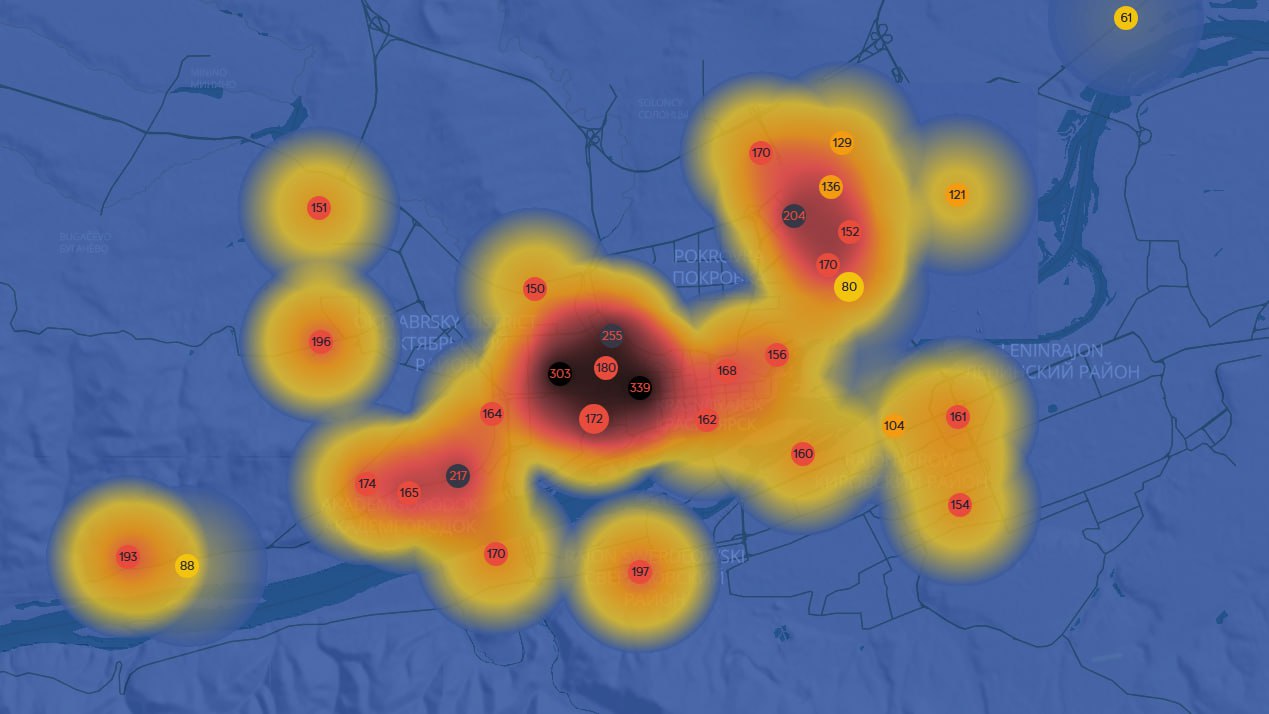 Фотографиями поделилась наша подписчица из Покровки. Датчики nebo.live фиксируют загрязнения во всех районах города. Хуже всего сейчас дышится в Железнодорожном и на Взлетке.