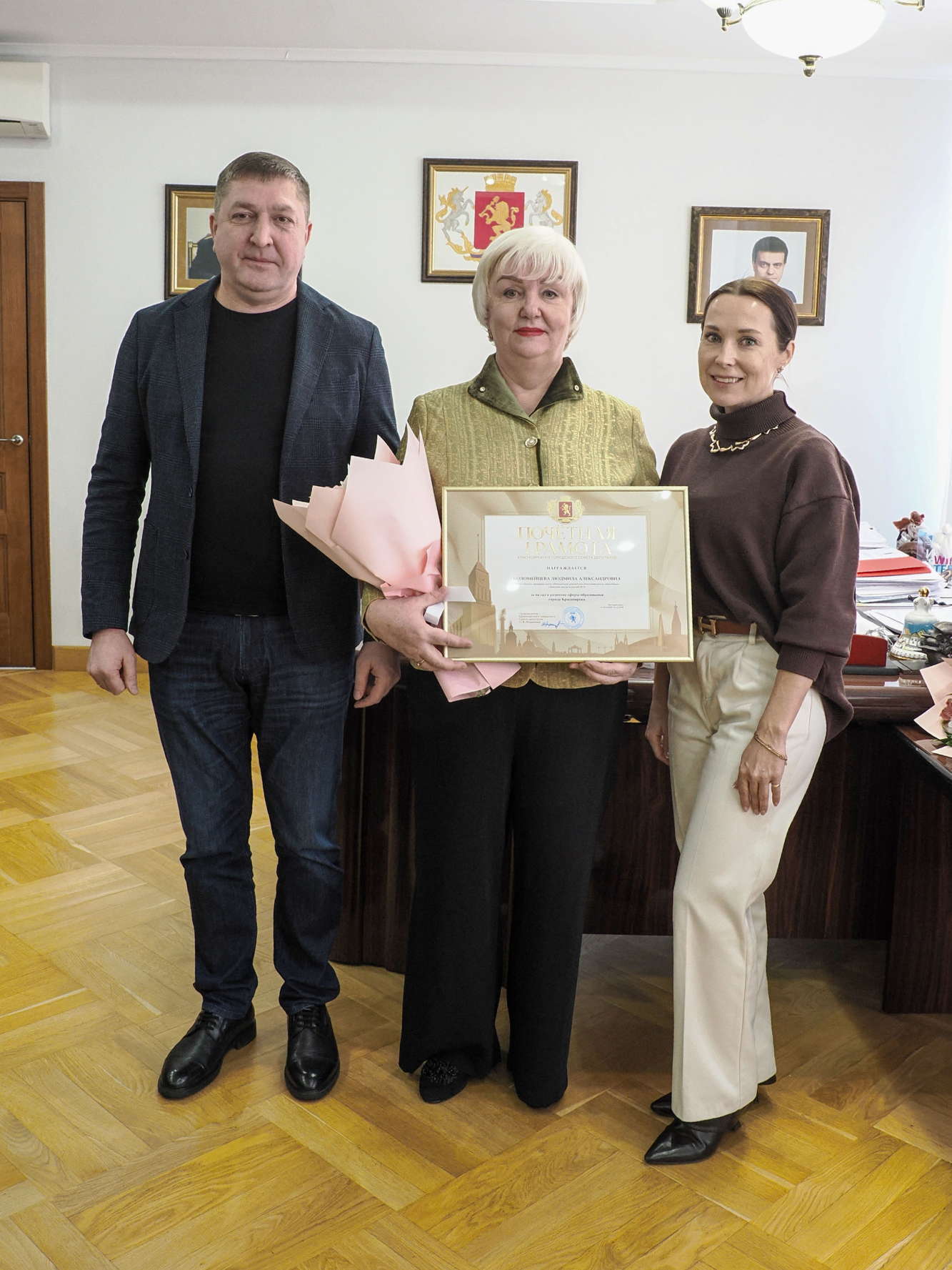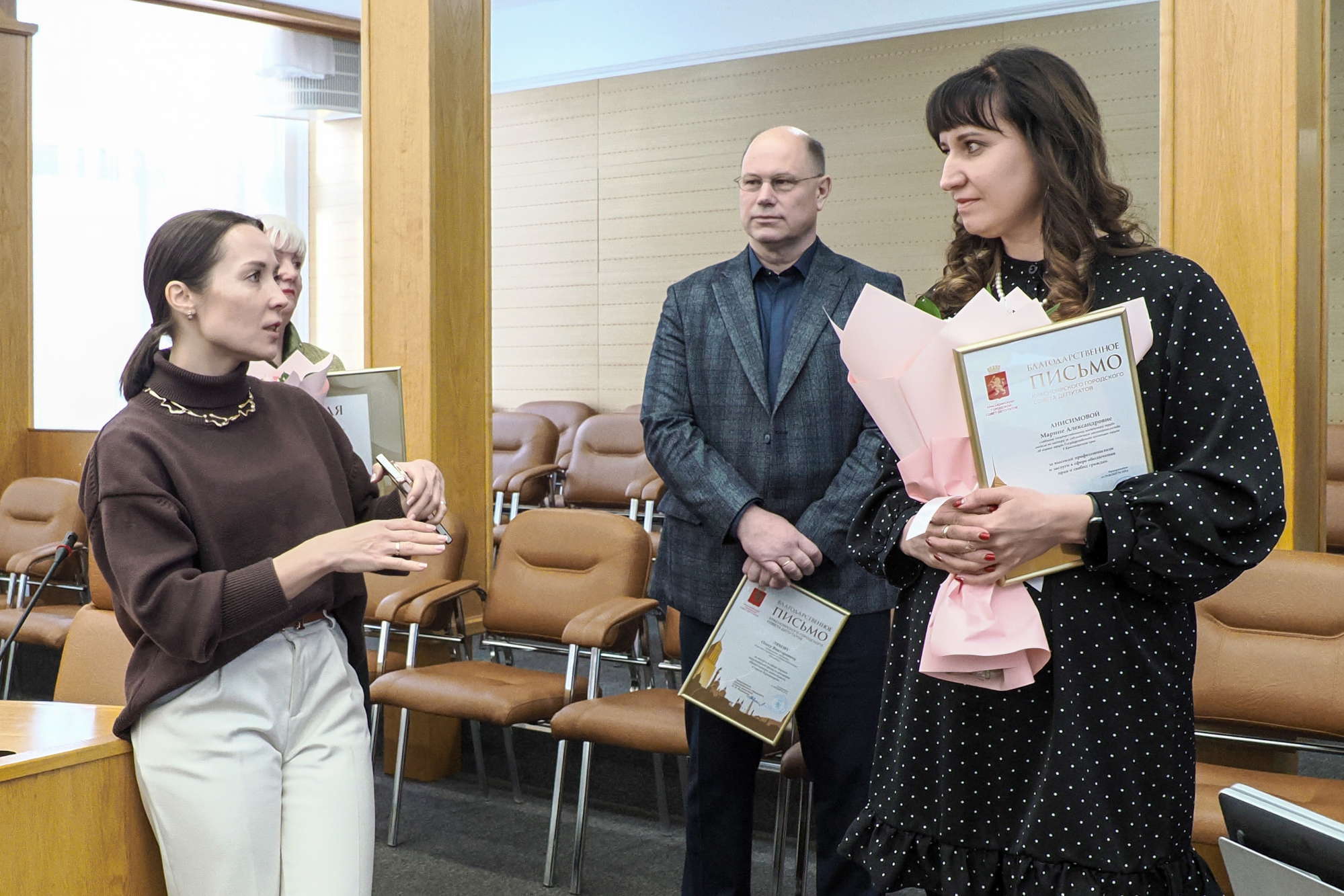 Заместитель председателя городского Совета Андрей Козиков и депутат Наталья Мельникова вручили Почетные грамоты и Благодарственные письма представителям различных сфер городской жизни.
