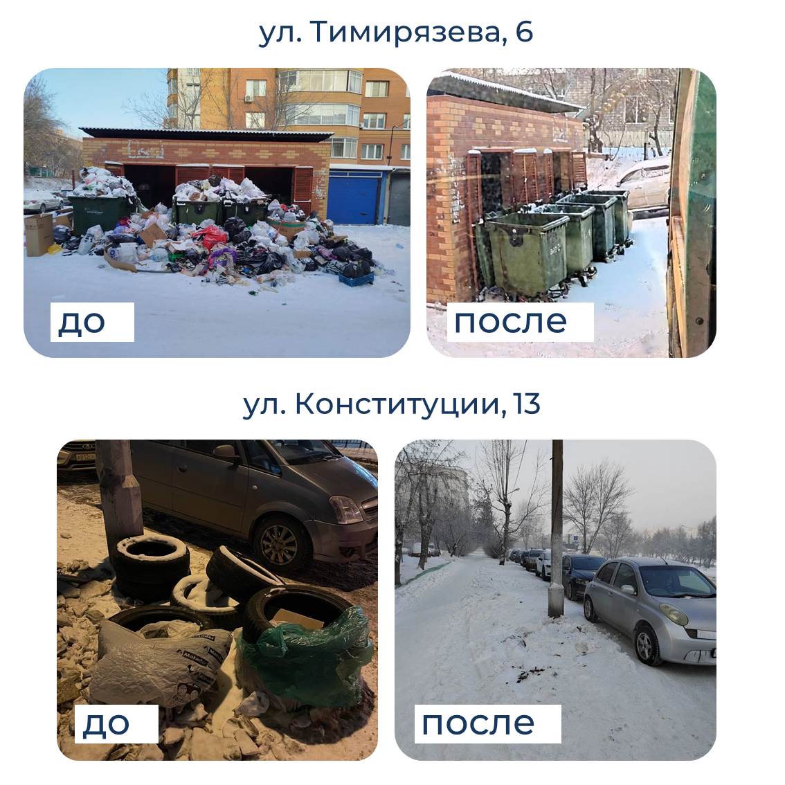 Даже в крепкие морозы вывозили шины, чистили лестницы и тротуары, убирали рекламу с домов.