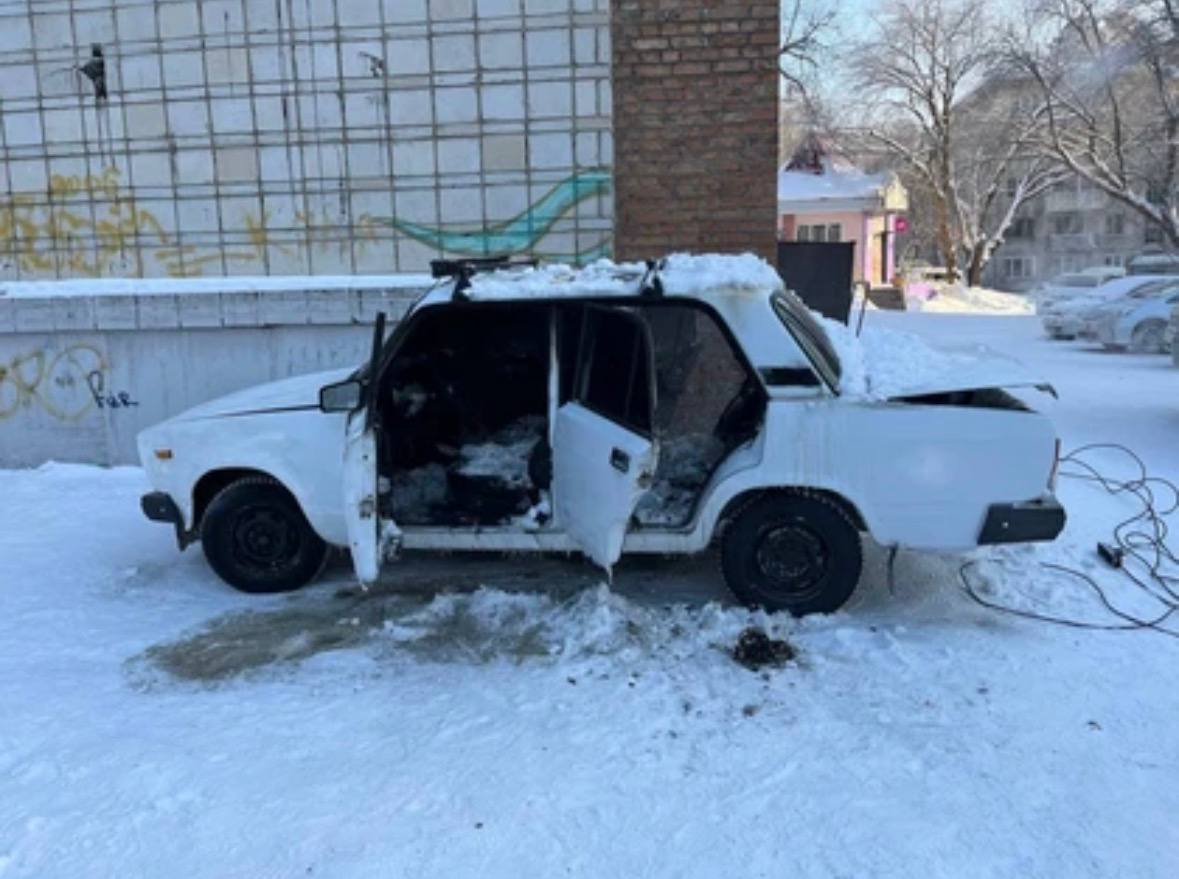 В Железногорске 23 января загорелся автомобиль «Жигули». Хозяин оставил в салоне подключенный через удлинитель тепловентилятор для прогрева, что привело к пожару.