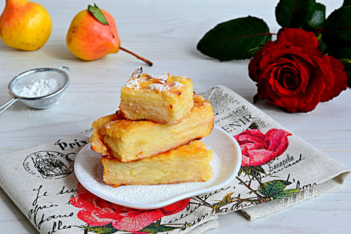 В результате получится влажный, насыщенный вкусом пирог, будоражащий ваши чувства, словно груши пропитались легким заварным кремом. Приятного аппетита!