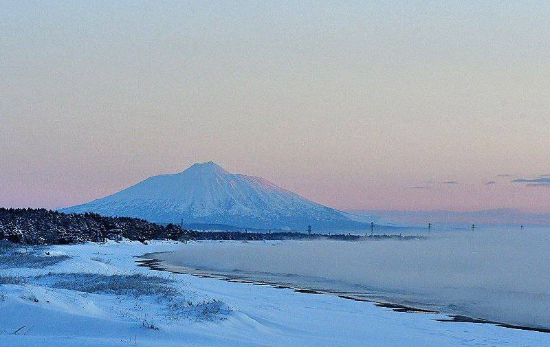 Красота дня. Морозное и туманное утро на Кунашире, Сахалинская область.