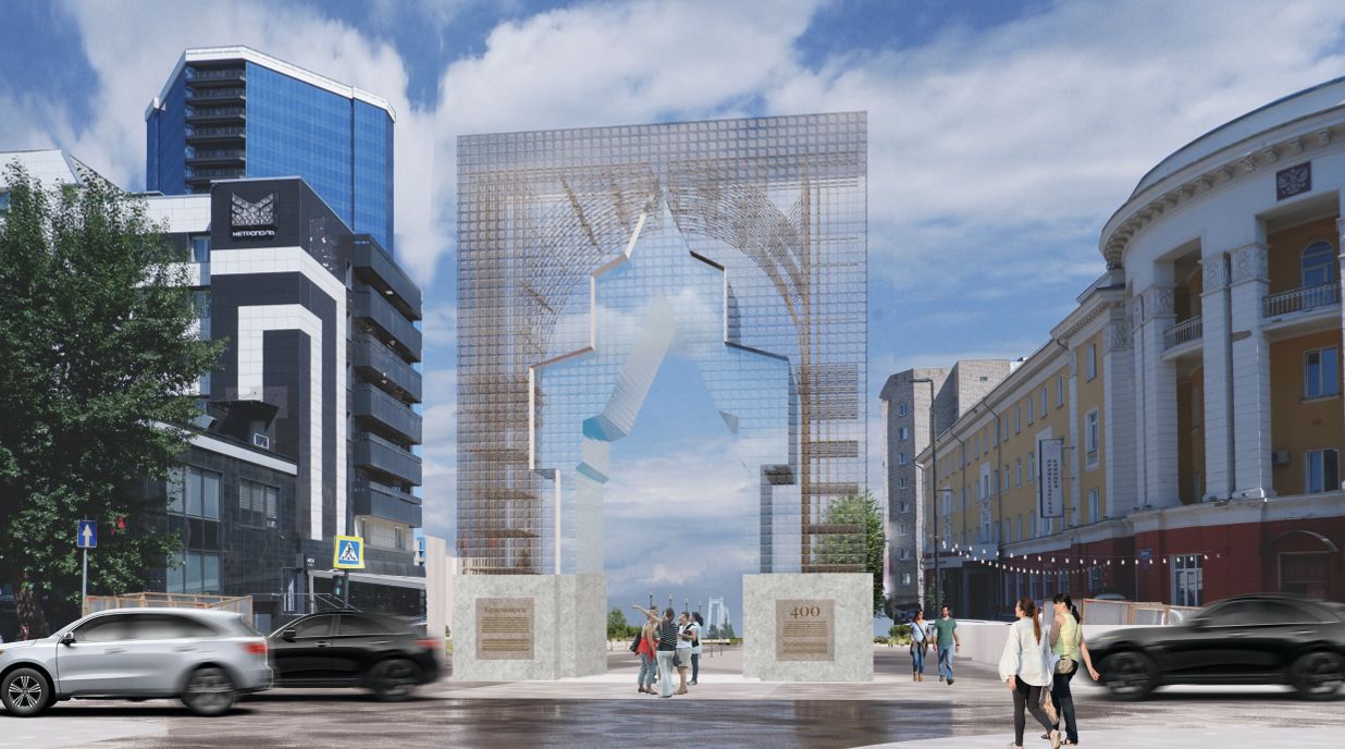 На площади Мира в Красноярске готовят масштабное обновление к юбилею города в 2028 году. Один из самых заметных элементов реконструкции — триумфальная арка.
