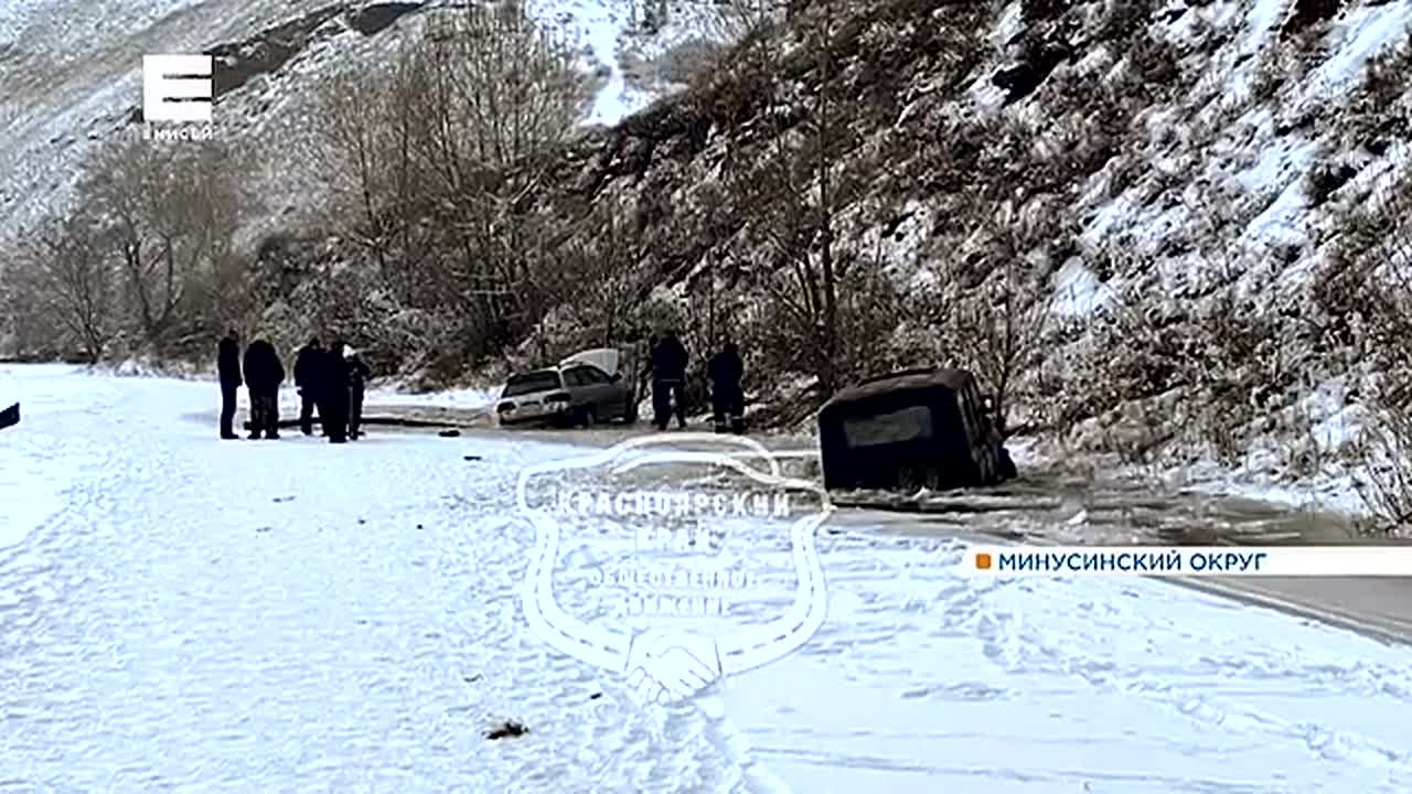 Две машины провалились под лед на протоке Енисея в Минусинском округе