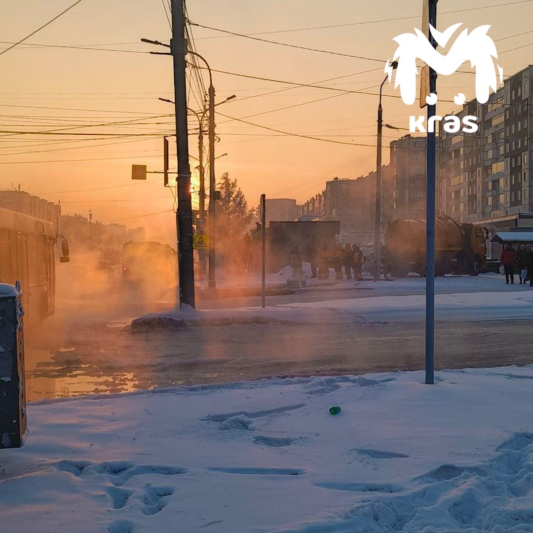 Из-за прорыва трубы с холодной водой встали улица 9 Мая и Комсомольский проспект. В "КрасКоме" говорят, что утечка случилась на сетях здания бывшего рынка. Причина — морозы. Пока сети перекрыли.