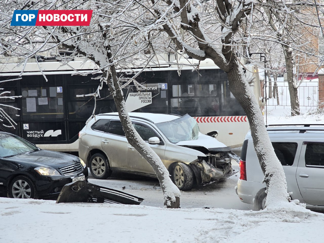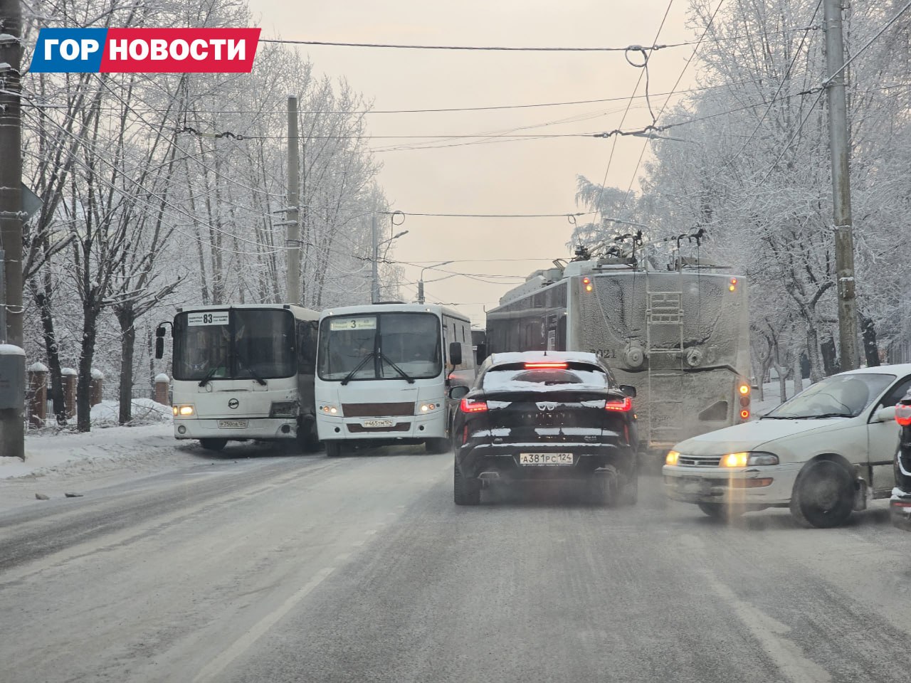 На Киренского собирается пробка из-за аварии с автобусом