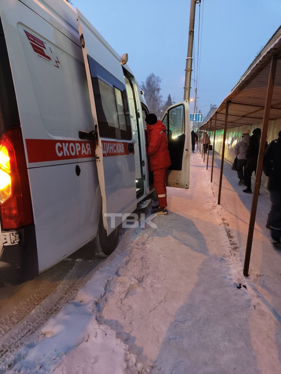 «Парижской Коммуны, 22, за музеем Сурикова. Сегодня перед нами поскользнулась женщина. Упала на спину. Помогли встать. Идти она не смогла, стонала. Вызвали скорую. Ребята приехали довольно быстро. Увезли. Пока ждали скорую, еще несколько человек чуть не пострадали от этого скользкого настила. Вопрос. Безопасность данного участка, конструкций на ком? Город?», – интересуется девушка.