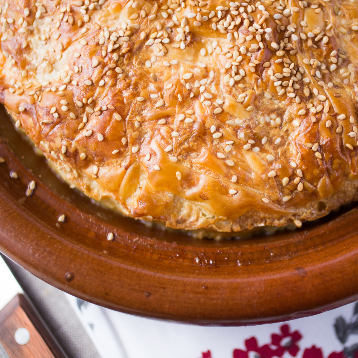 Дальше следует лёгкая начинка: яйца взбить с щепоткой соли и перца, соединить с творогом, после чего равномерно перемешать с шпинатом на тесте. Уголками теста закрыть пирог и смазать поверхность взбитым яйцом, посыпать кунжутом — это добавит текстуру и золотистый цвет.