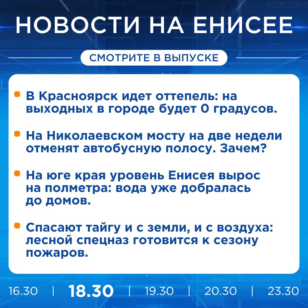Подробнее об этих и других новостях расскажем на «Енисее»