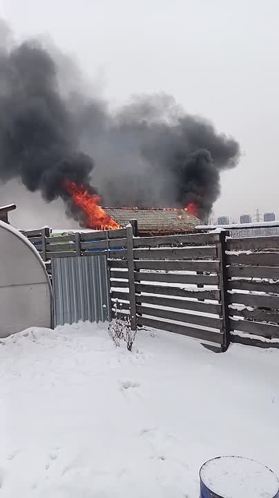 Пожар тушат в СНТ Ветерок на улице Ясная. Очевидцы делятся фото и видео дом объят огнем, а к небу поднимается черный столб дыма.