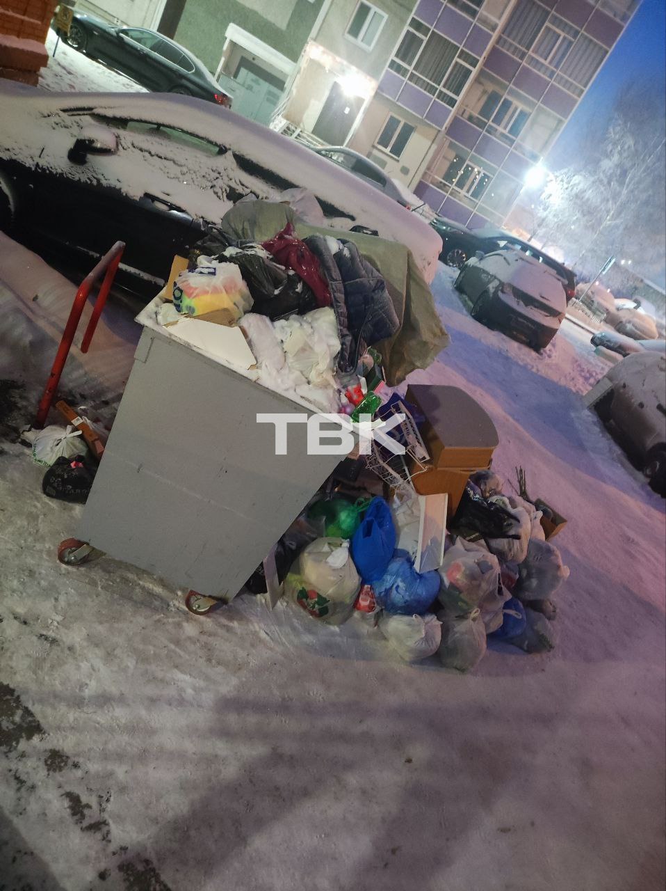 Похожая ситуация, по словам автора фото, и в микрорайоне Спутник на Нижней Пойме. Там контейнеры переполнены уже давно: