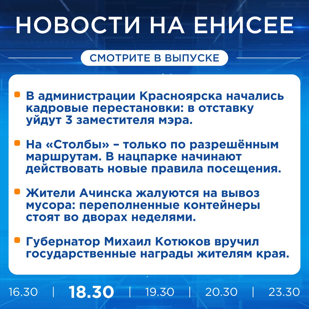 Подробнее об этих и других новостях расскажем на «Енисее»