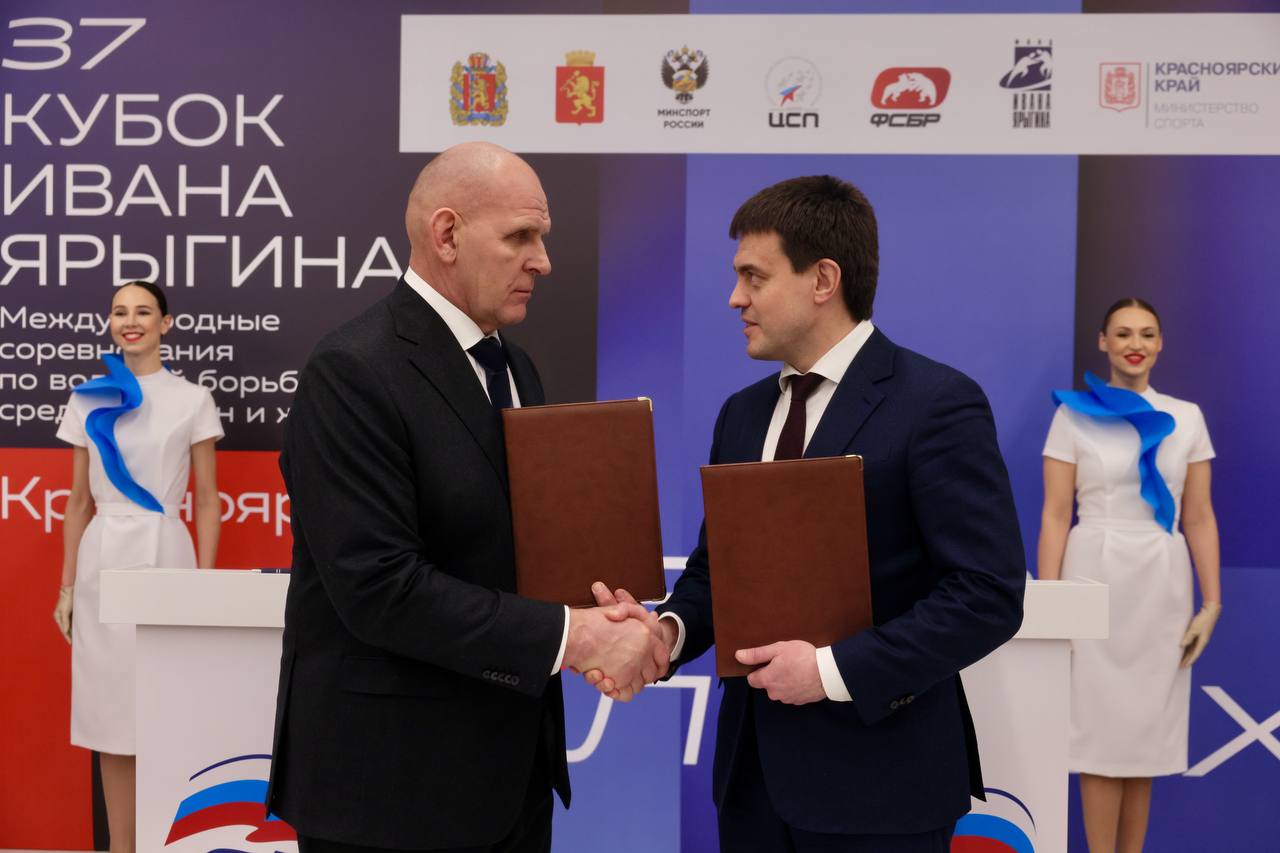 Губернатор Михаил Котюков подписал соглашение с трехкратным олимпийским чемпионом Александром Карелиным об участии Красноярского края в большом проекте партии Единая Россия - Выбор сильных.