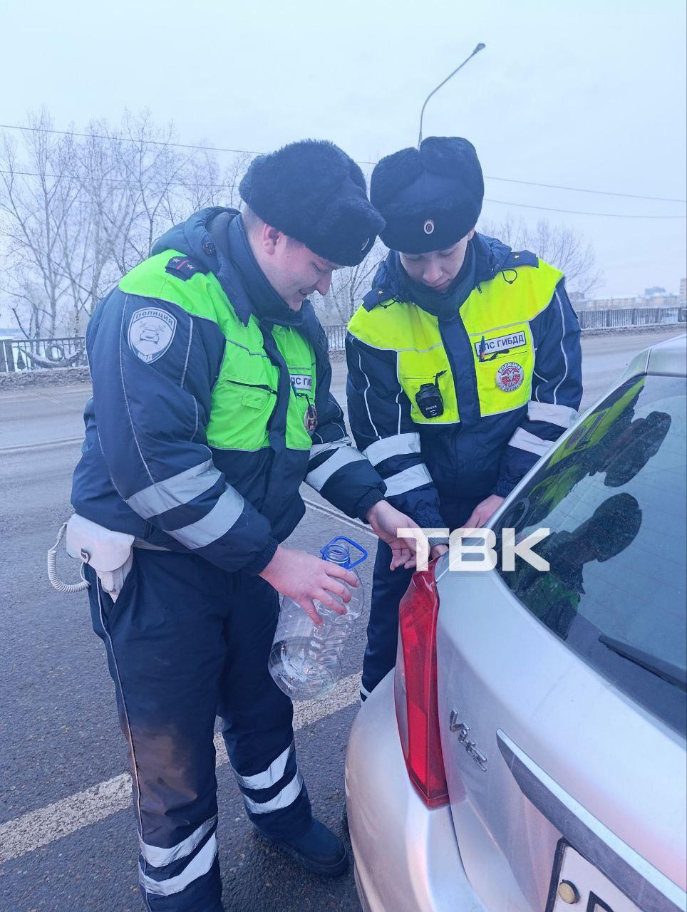 Сотрудники ДПС помогли красноярке на Коммунальном мосту