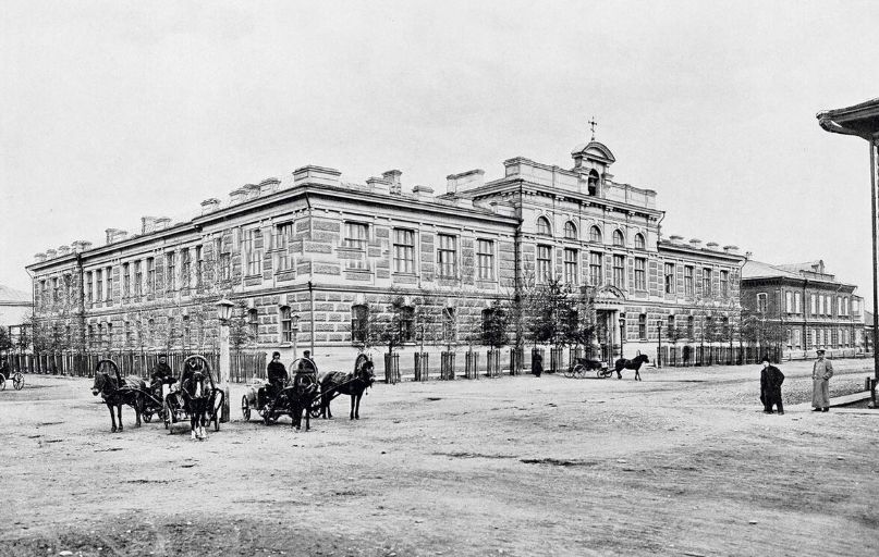 Это здание было построено в 1889–1891 годах по проекту архитектора Климова. Является объектом культурного наследия. Сейчас в этом двухэтажном кирпичном здании на Благовещенской (ныне Ленина) находится один из корпусов Сибирского федерального университета.