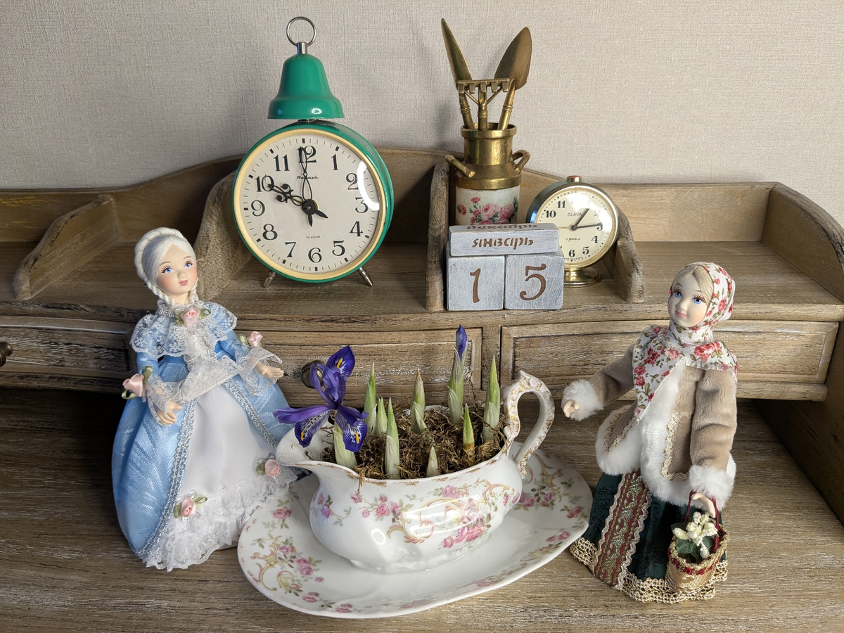 Мускари, которым был дан старт в начале января, активно развиваются и уже поднимают свои зеленые листочки, а пузыри бутонов не за горами. Пушкиния тоже делает успехи: луковицы готовы вступить в новую фазу жизни, а нарциссы устанавливают свои корни, ожидая подходящего момента для роста.