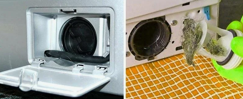 После завершения программы откройте сливной фильтр: грязь и неприятные запахи просто вылетают из машины. Такой шокирующий момент подчеркивает, как важен регулярный уход за стирочной техникой.