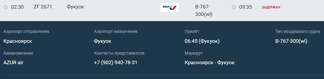 Комментарий авиаперевозчика публикует пресс-служба аэропорта Красноярск. Из-за продолжительного ремонта Boeing 767, в Красноярск из Перми прилетит резервный борт. Прилет ожидается в 01:00. Вылететь на Фукуок пассажиры по плану смогут в 02:30.