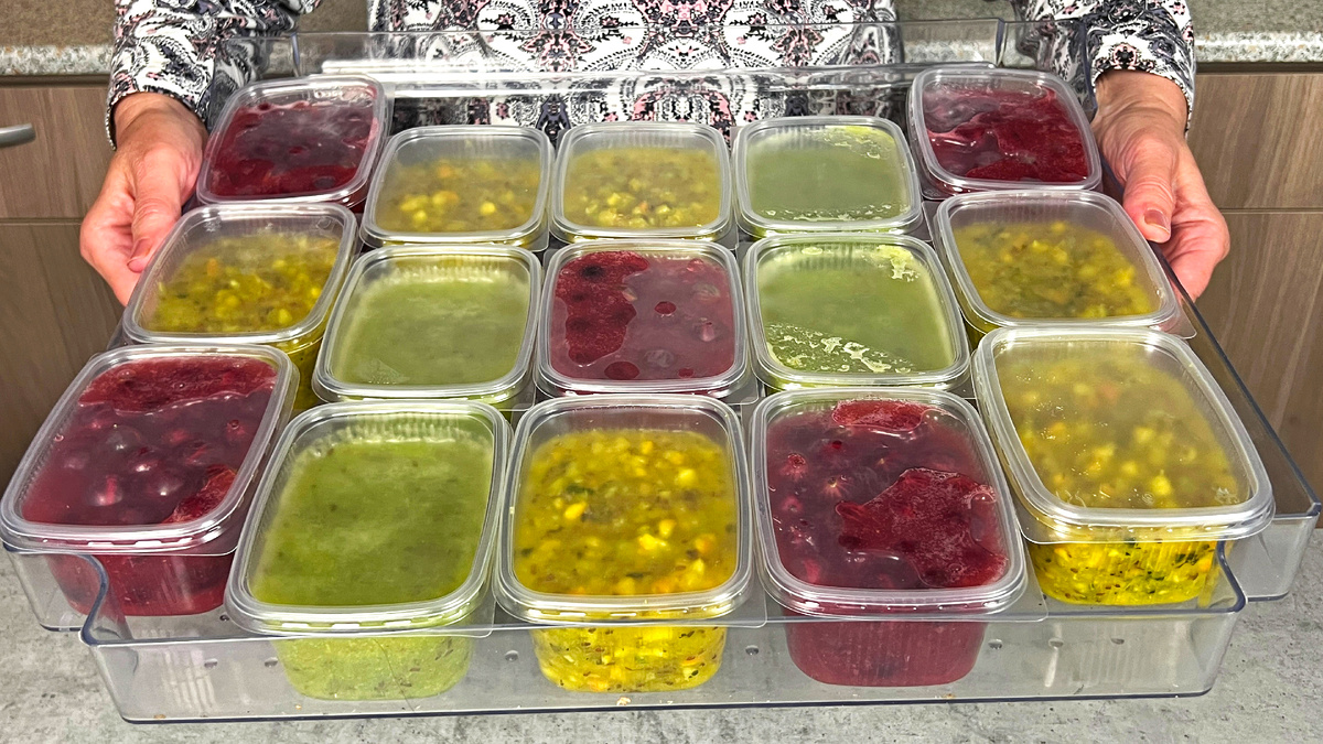 - Крыжовник в муссе: Для этого лучше всего подойдут спелые красные ягоды. Их стоит уложить в небольшие контейнеры, заполняя их наполовину. Оставшуюся часть ягод следует измельчить в блендере до пюре и протереть через сито, добавив по вкусу сахар. Полученное воздушное пюре помещается сверху на ягоды в контейнере для заморозки.