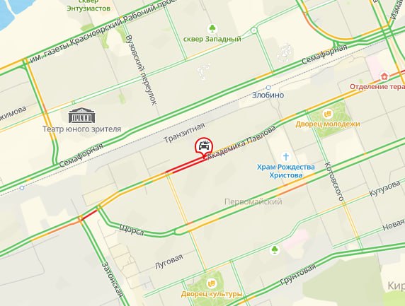 Очевидцы сообщают, что движение в районе остановки «Универсам» по Павлова сейчас затруднено в обе стороны.