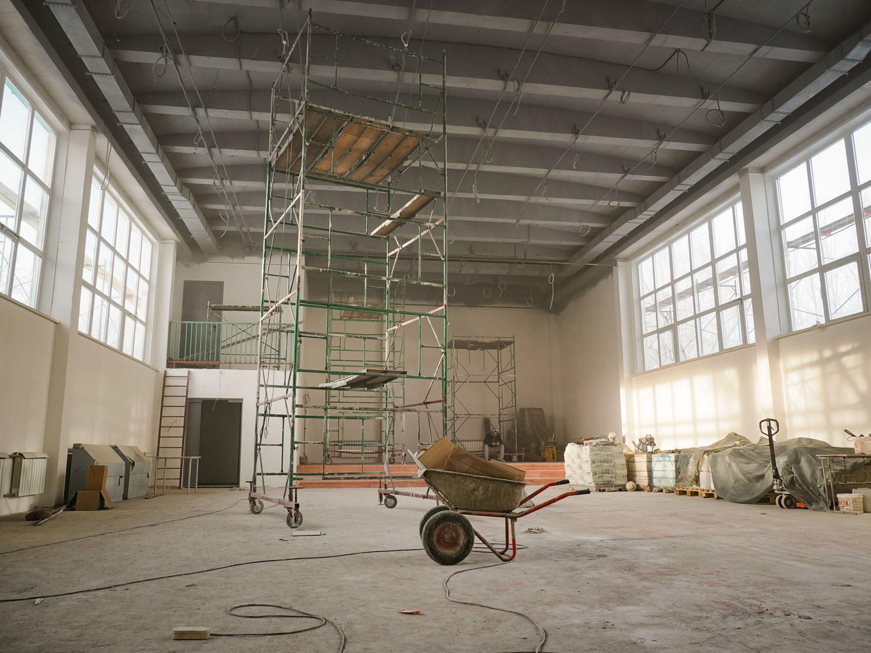 Ремонтные работы в здании 1967 года постройки начались в августе прошлого года. На сегодня уже выполнены демонтажные и штукатурные работы, монтаж обрешетки и покрытия кровли, устройство кафельной плитки в двух этажах. Продолжаются электромонтажные работы, ведется устройство слаботочных сетей, вентиляции, лестничных маршей.