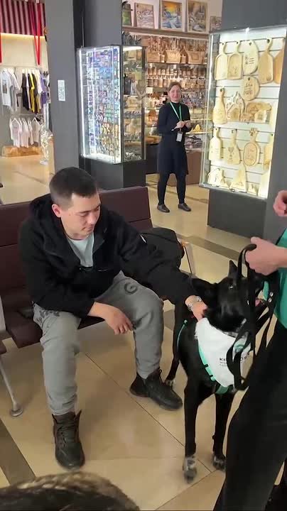 Собаки подбадривают пассажиров перед полетом в красноярском аэропорту