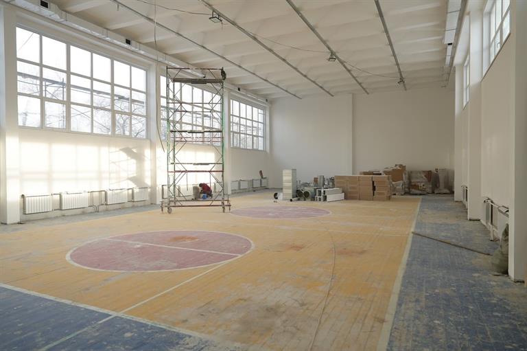 Филиал гимназии №13 (бывшей 30-й школы) на улице Лесной: сейчас идёт монтаж внутренних сетей и отделка помещений. А в период 2023-2025 гг. в здании 1971 года постройки капитально отремонтировали кровлю и фундамент, сделали новую спортплощадку.