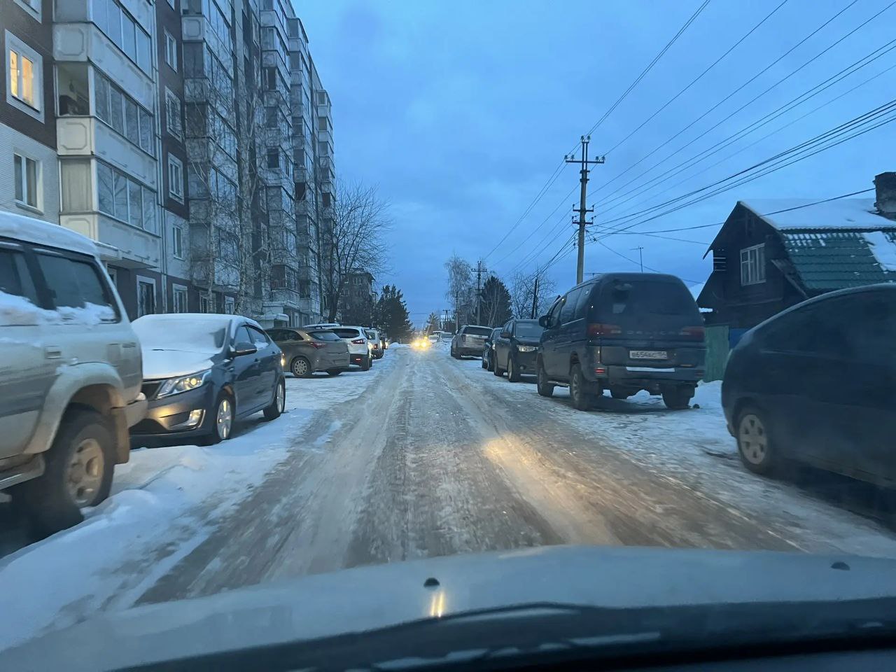 По-старому, с машинами на обочинах. Объявления в чатах, в УК, на подъездах, в соцсетях не помогли. Поэтому грейдер проехать не смог и ушёл чистить другие улицы.