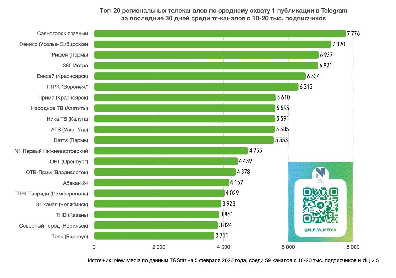 Телеграм Енисея занял 5 место среди региональных тг-каналов по среднему охвату одного поста