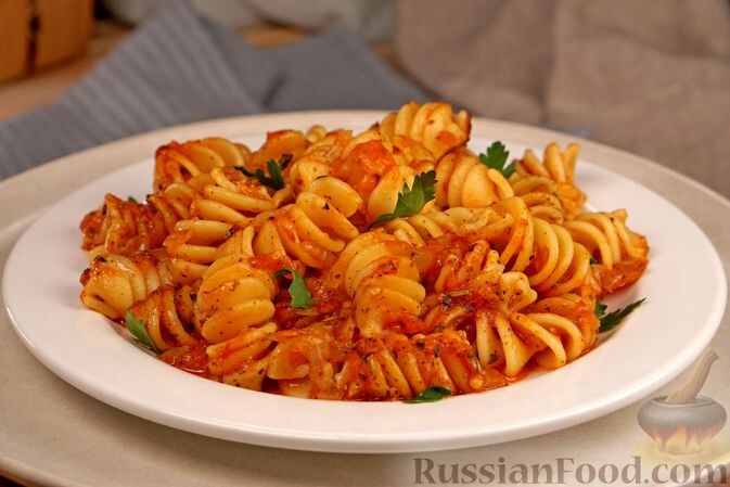 - Макароны в томатном соусе: обжаренный лук с чесноком, свежие помидоры и томатное пюре создают взрыв вкусов, когда к ним добавляются макароны.